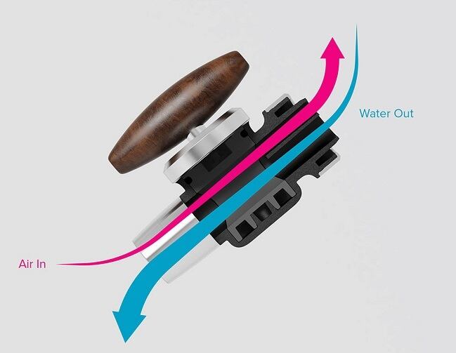 空気層と飲料層が分離されると同時に開閉する原理を