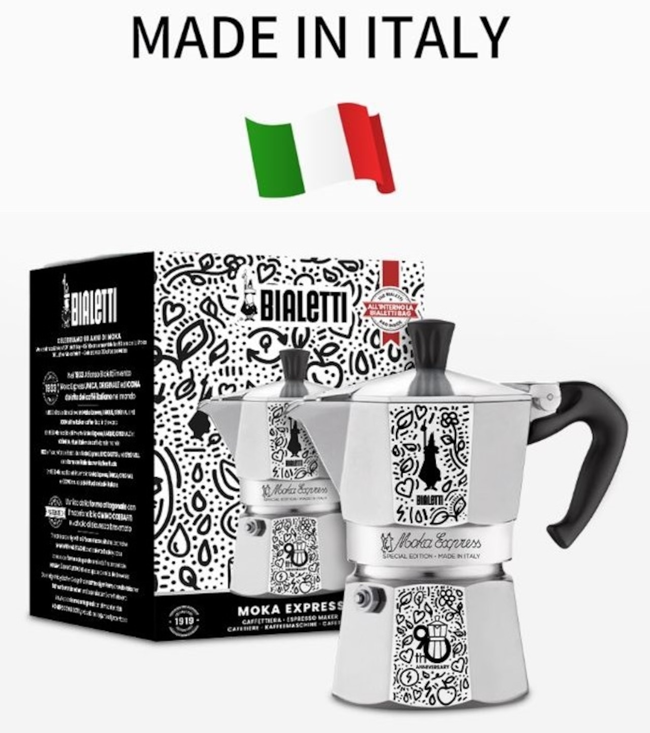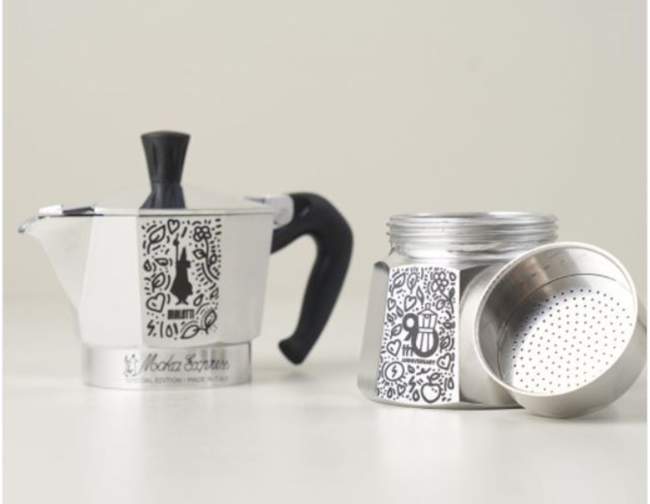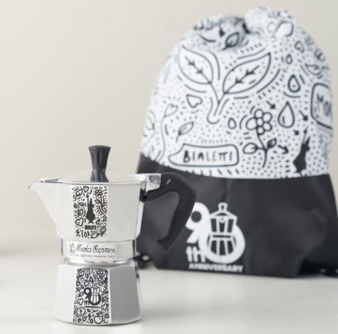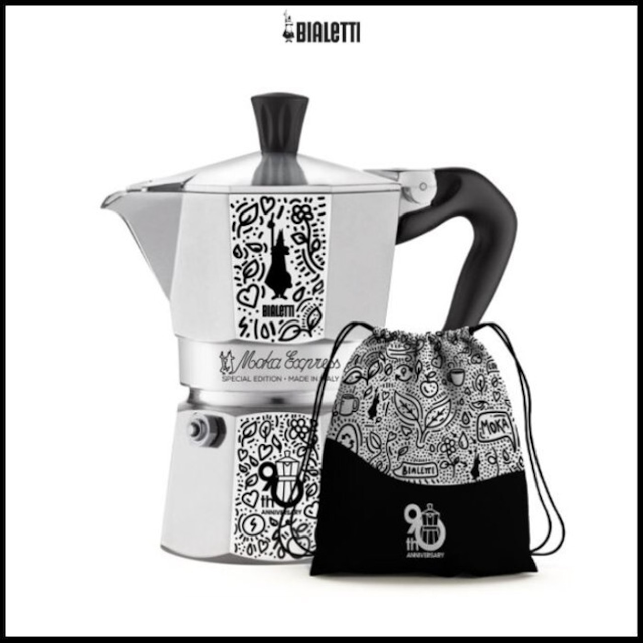 この90周年記念年を祝うために、ビアレッティはポップでかわいいドゥードゥルアートからインスピレーションを得て、特別版をデザインしました。